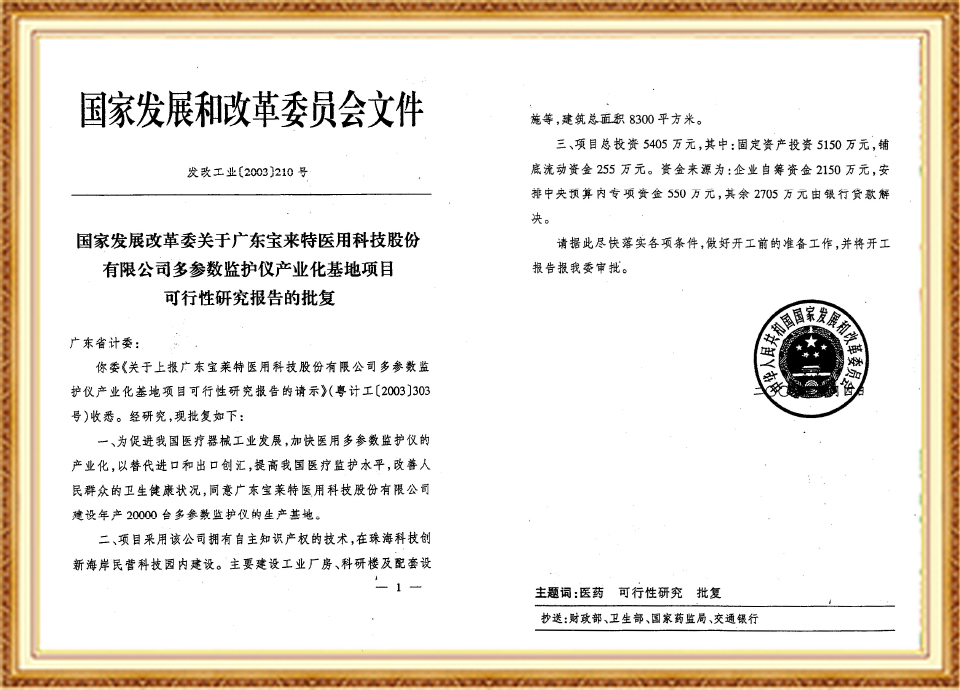 被國家發(fā)展與改革委員會授予“國家多參數(shù)監(jiān)護儀產(chǎn)業(yè)化基地”