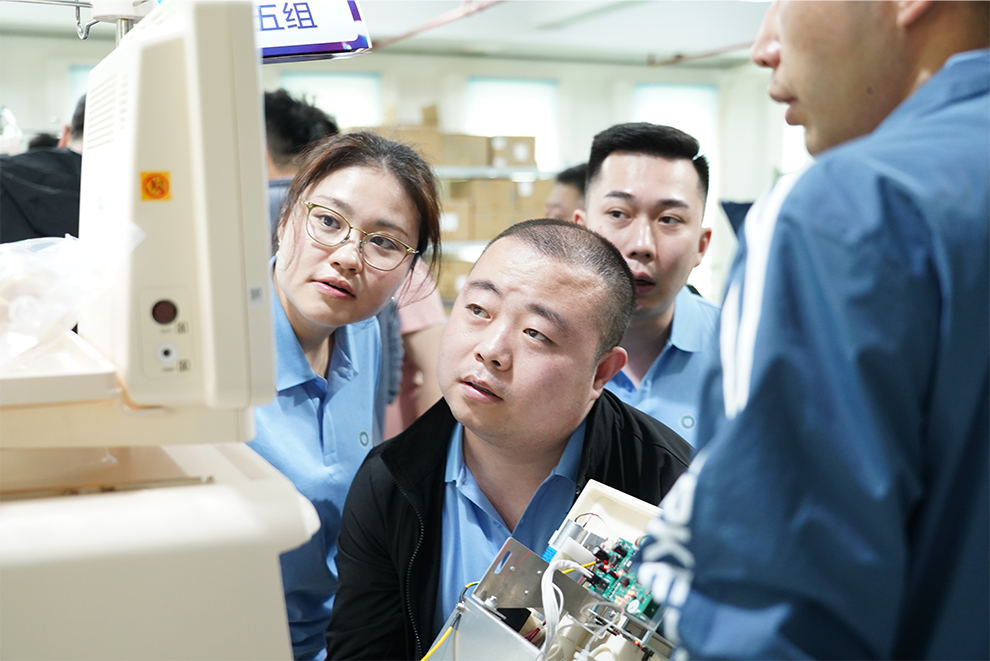 選手們在寶萊特血液凈化設(shè)備測試車間實地觀摩