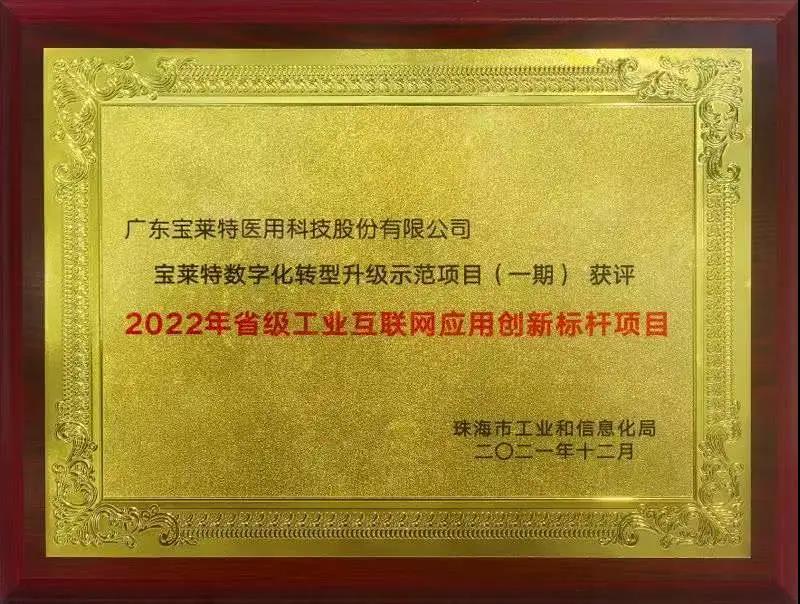 12月7日,2021年珠海市“5G 揚帆 聯通未來”5G+工業互聯網大會隆重召開。寶萊特數字化轉型升級示范項目(一期)榮評 “2022年省級工業互聯網應用創新標桿項目”。