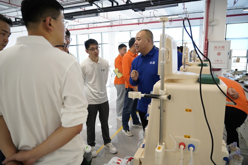 在3月13日珠海分會場的競賽過程中,五個團隊分別進行了自我介紹并拋出自己的競賽格言,其中“乾坤未定,你我皆是黑馬。”“無限進步!”等勵志話語一次次點燃了賽場的熱情。在理論講授部分,醫學經理陳紅梅以及工程師譚鵬,分別對D系列血透濾過設備以及D800血透裝置進行了介紹,隨后大家就進入到真實的生產車間,去感受寶萊特全流程的生產線路,并進行機器實操講授與考核。五位專家分別對實操進行打分并點評。