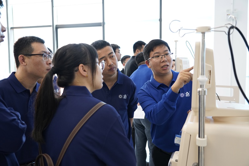 在剪彩儀式中,田教授提出“希望寶萊特能作為研發專利的臨床應用平臺,讓這項專利技術服務于更多的醫院與患者,推動血液透析行業技術迭代”。寶萊特代表周國軍先生亦表示“寶萊特32年以來,一直秉持著‘厚德精工,守護健康’的初心,與北大第一醫院合作,為D800血液透析濾過機增添新技術;我們的血透機不僅是一臺治療機器,更是一臺‘科研機器’”。精彩的剪彩儀式在業界專家與工程師們的共同見證下順利完成,隨后大家參觀了寶萊特全新的展廳,對公司拓路歷程,產品榮譽,裸眼3D呈現的CRRT技術,以及三大產品線等都有了全面而詳實的了解。
