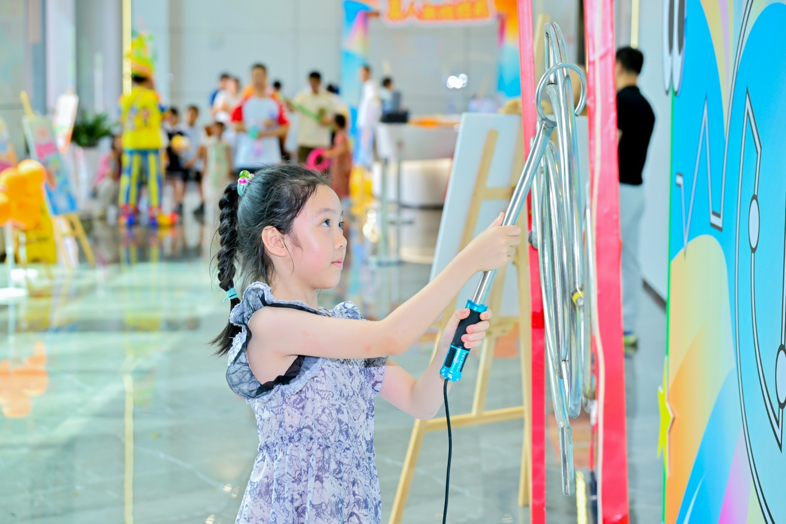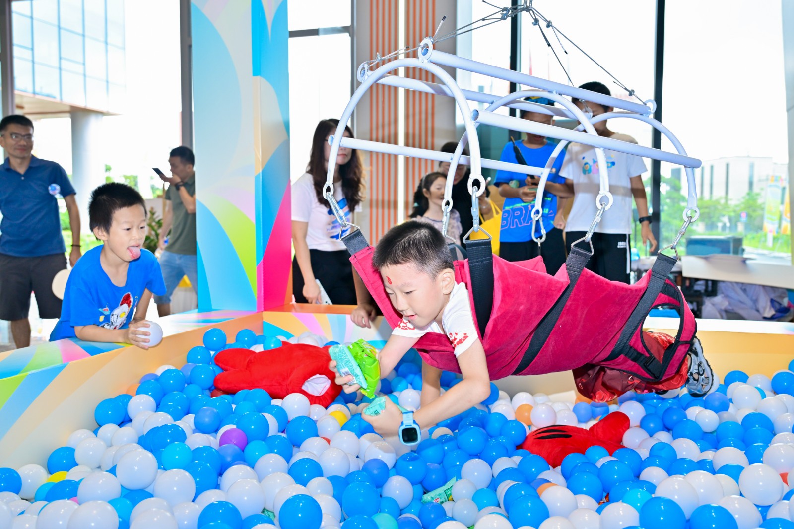 典禮的榮光未散,科技園已切換為溫情的共生圖景。一樓的親子游園會上,非遺漆扇DIY的墨色在紗面暈開文化傳承,真人娃娃機中的歡聲詮釋著“聚光向WE來”的深意——“WE”既是員工家庭的小單元,亦是醫患同心、產業協力的宏大敘事。孩子們緊握集章卡兌換伴手禮的笑靨,恰似企業溫度最輕盈的注腳。