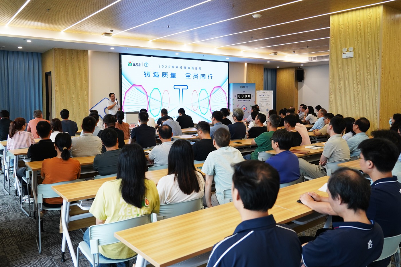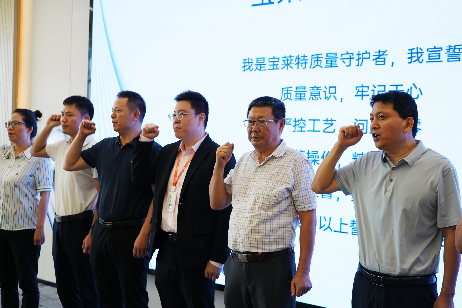 在董事長擲地有聲的號召后,大會迎來了激動人心的全員質量誓言宣讀環節。全體與會人員肅立,在領誓人的帶領下,以鏗鏘有力的聲音莊嚴承諾恪守質量準則、履行質量責任,將“質量即生命”的信條內化于心、外化于行,現場氣氛莊嚴肅穆,彰顯了寶萊特人捍衛質量的堅定決心。這份誓言不僅響徹會場,更將成為整個質量月乃至未來工作中的行動指南。