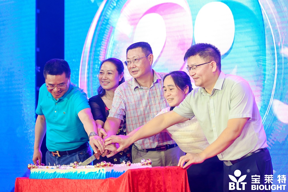 董事長燕金元、副總裁梁瑾、唐明云、張道國、特邀嘉賓王石女士共同開啟慶生儀式,隨著一束束激光迸發,在大屏上雕刻出寶萊特集團全新血液凈化產業基地的輪廓,掀起了現場一陣高潮!