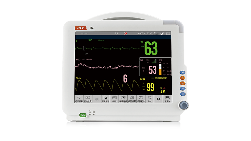 適用范圍:該產(chǎn)品在醫(yī)院的重癥監(jiān)護病房、冠心病監(jiān)護病房、新生兒監(jiān)護室、手術(shù)室使用,適用于對成人、小兒、新生兒的心電(含ST段及心律失常分析)、心率、呼吸、脈搏血氧飽和度、脈搏率、無創(chuàng)血壓、有創(chuàng)血壓、二氧化碳、氧指數(shù)、總血紅蛋白(SpHb)、碳氧血紅蛋白(SpC0)高鐵血紅蛋白(SpMet)進行監(jiān)護,并對監(jiān)護的信息進行顯示、回顧、存儲和打印。其中,ST段和心律失常分析、雙頻指數(shù)、總血紅蛋白(SpHb)、碳氧血紅蛋白(SpC0)和高鐵血紅蛋白(SpMet)監(jiān)測功能不適用于新生兒。該產(chǎn)品應(yīng)由專業(yè)臨床醫(yī)生或在專業(yè)臨床醫(yī)生的指導下使用。使用該產(chǎn)品的人員應(yīng)接受充分的培訓。任何沒有授權(quán)的人員或者沒有經(jīng)過培訓的人員不得進行任何操作。
