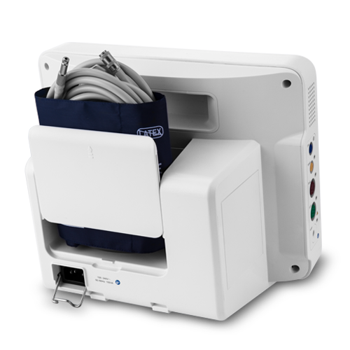 結構及組成:監護儀由主機、主控軟件及相應配套附件組成,附件包括二氧化碳測量組件、輸液滴速測量組件、心電導聯線、無創血壓袖帶、體溫傳感器和脈搏氧飽和度傳感器。