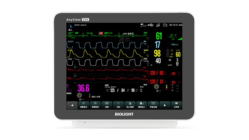 該產品適用于對成人、小兒、新生兒的心電(含ST段測量、QT/QTC測量及心律失常分析)、心率、呼吸、脈搏血氧飽和度、脈率、體溫、無創血壓、輸液滴速(不包括鎮痛藥、化療藥物、胰島素等的輸液)、二氧化碳、有創血壓和有創心輸出量(僅適用于成人患者進行監測,并對監測的信息進行顯示、回顧、存儲和打印。S10A、S7A不支持二氧化碳、有創血壓和有創心輸出量。該產品預期在醫療機構使用,可用于醫院的多種病房,如重癥監護病房、冠心病監護病房、新生兒監護室、手術室、普通病房,為醫護人員提供病人生理信息。